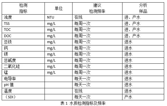 4.1.1 至少每周監(jiān)測(cè)并記錄超濾預(yù)處理的進(jìn)出水COD、濁度以及鐵/錳金屬等;