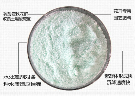 硫酸亞鐵俗稱綠礬,形成絮凝體快而穩(wěn)定,沉淀時間短,適用于堿度高、濁度大的情況,但色度不易除凈,腐蝕性也較強(qiáng)。