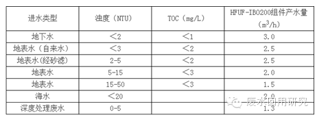 注:表列組件產(chǎn)水量是通用標準,具體項目組件產(chǎn)水量根據(jù)具體水源條件而定。